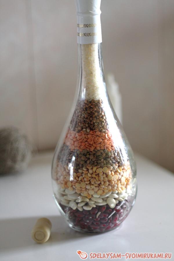 главное правило — насыпать сначала самые мелкие крупы, постепенно увеличивая зерно — чтобы не просыпАлись в нижние слои. я такое себе много раз делала, но тетушки выпрашивают, как трофей )))